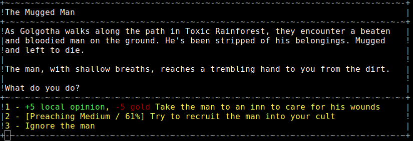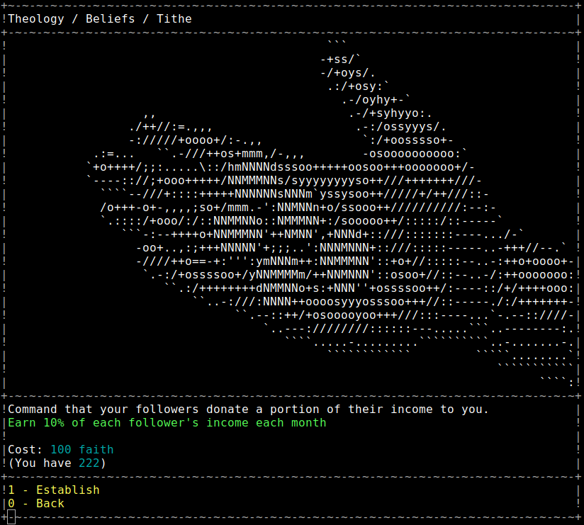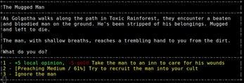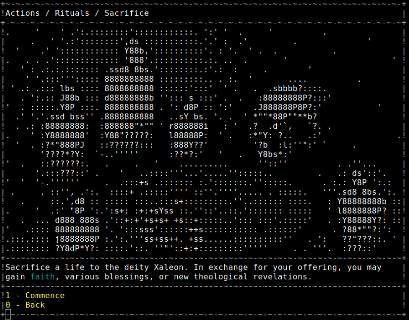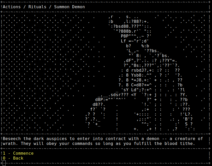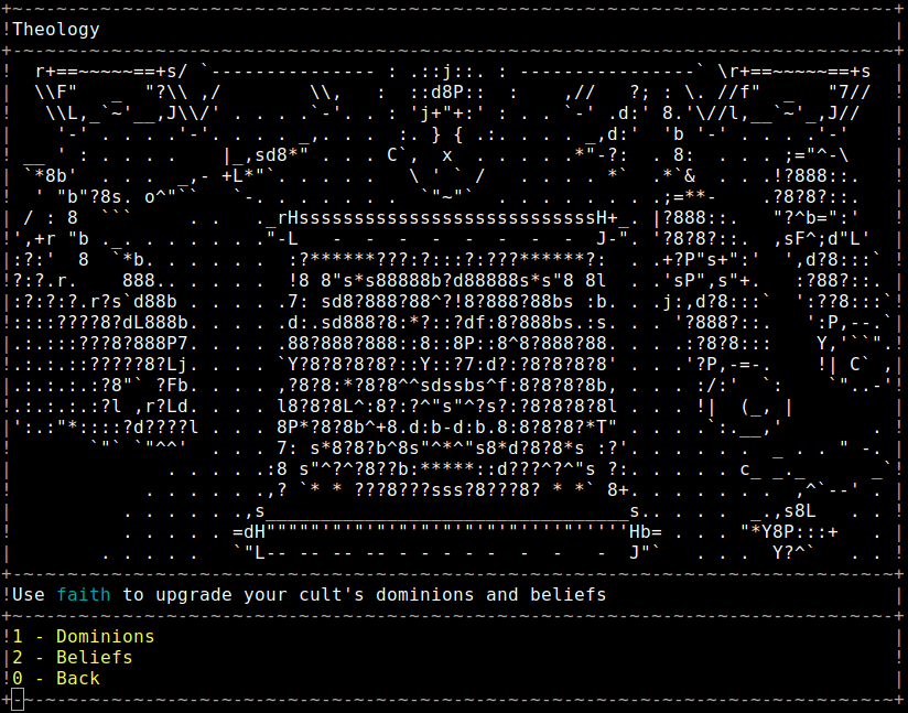 CultGame is a retro strategy RPG where you start your own cult in a procedurally generated dark fantasy world complete with haunting ASCII art.